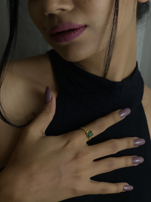 Esmeralda : 18k Gold Plated Adjustable Emerald Ring