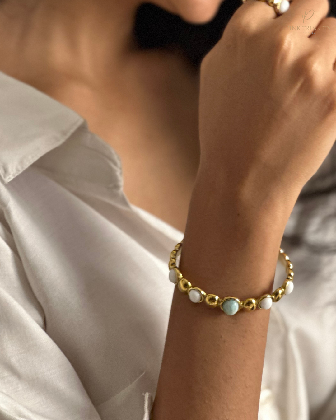Ciel: 18k Gold Plated Blue and White Pearls Studded Bracelet