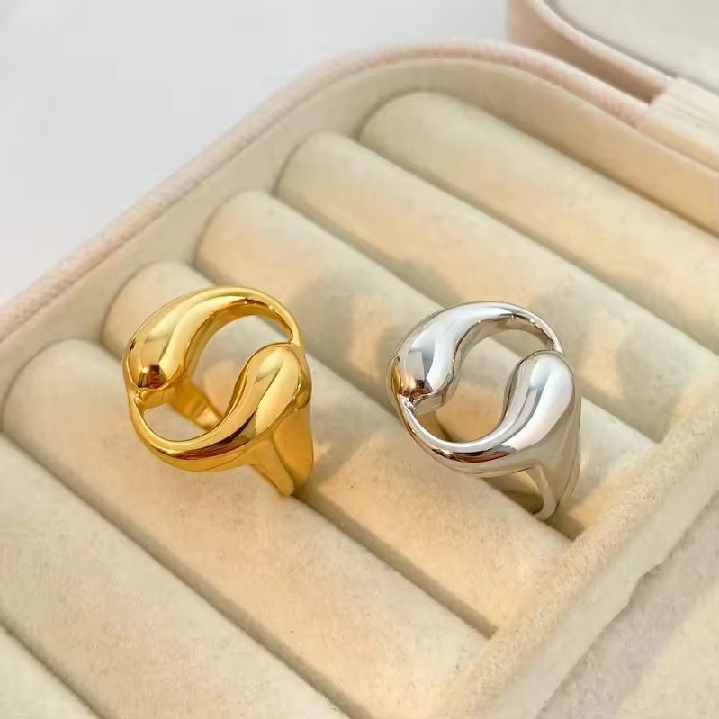 Sculpted with a bold, flowing silhouette, this 18k gold-plated ring comes in gold and silver tones for a sleek, modern edge.