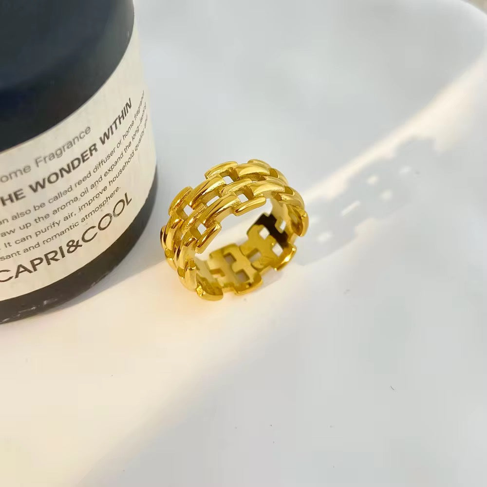 Illuminate your style with our Radiant Aura 18k gold plated ring, a captivating symbol of timeless elegance. Crafted with precision and passion, this exquisite piece features intricate detailing and a luminous golden finish that exudes opulence and grace. Each curve and contour of the ring captures the essence of a radiant aura, casting a mesmerizing glow that draws in admirers and ignites confidence. Whether worn as a statement of sophistication or a symbol of self-assurance, the Radiant Aura ring is sure to elevate every ensemble with its celestial charm. Embrace the allure of timeless beauty and adorn yourself with this exquisite accessory, destined to become a cherished treasure in your collection.